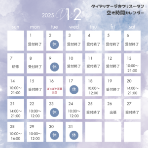 12月の空き時間カレンダーを更新しました^^